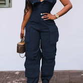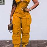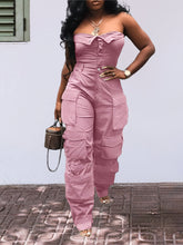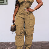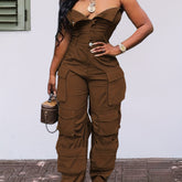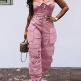 CHICSALE Women’s Bandeau Jumpsuit - Sexy Tube Top One-Piece with Button Detail